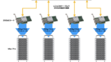 オールフラッシュ構成のMIDONAS Q / MQ-2490FUを使用したシンプルな4Kデータ共有編集環境です。NASには25GbEポートを4系統標準装備。この4系統をリンクアグリゲーションで結束して100GbE化のうえ、QNAP / QSW-M5216-1Tと接続。こうすることでNASの強力なアクセス能力の全てを100GbEの帯域でハブとアクセスが可能になります。各編集機にはLC-LC光ファイバーケーブルを使用し25GbEで接続し通信を完全双方向化することで、NAS内のデータ読み込みを理想的な速度で行えます。QSW-M5216-1Tハブには25GbEポートが16系統ありますが、4K編集機は最大で8系統まで対応できます。